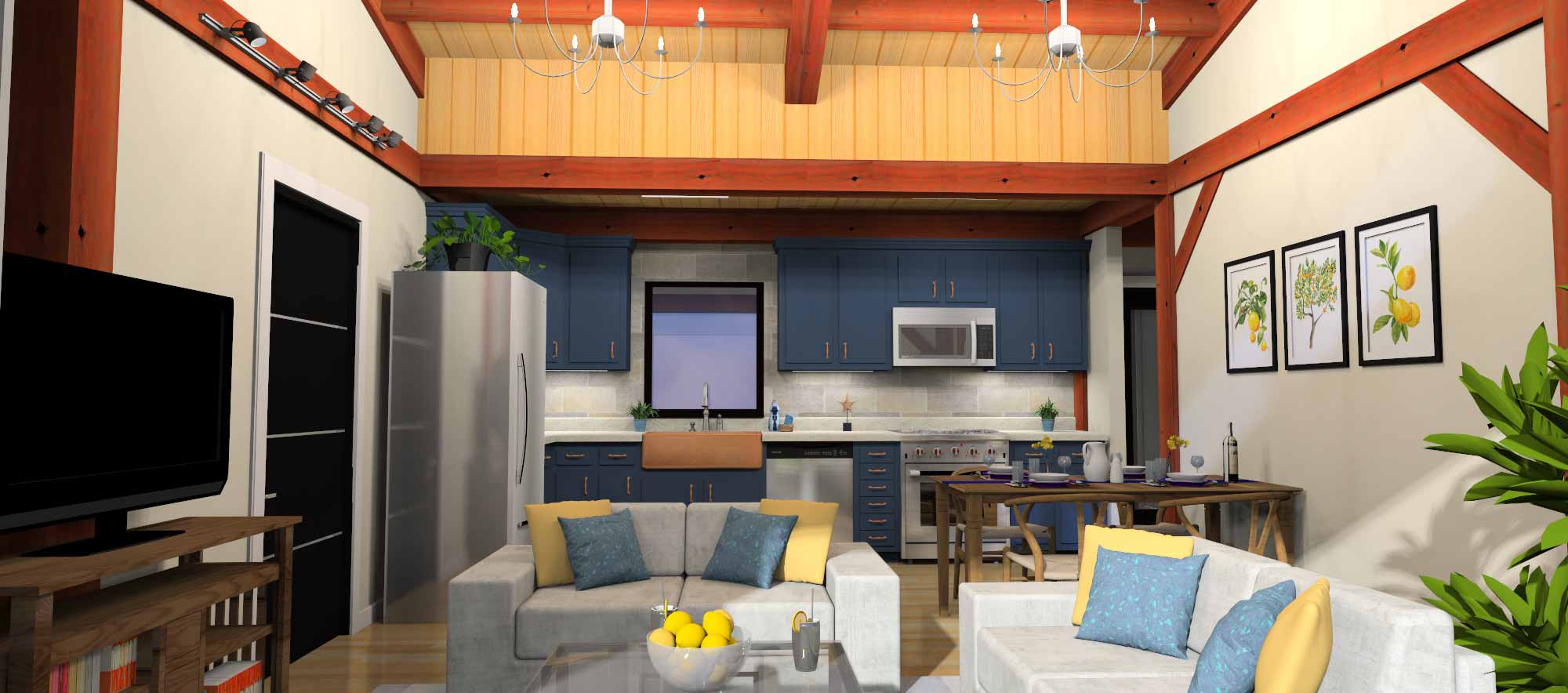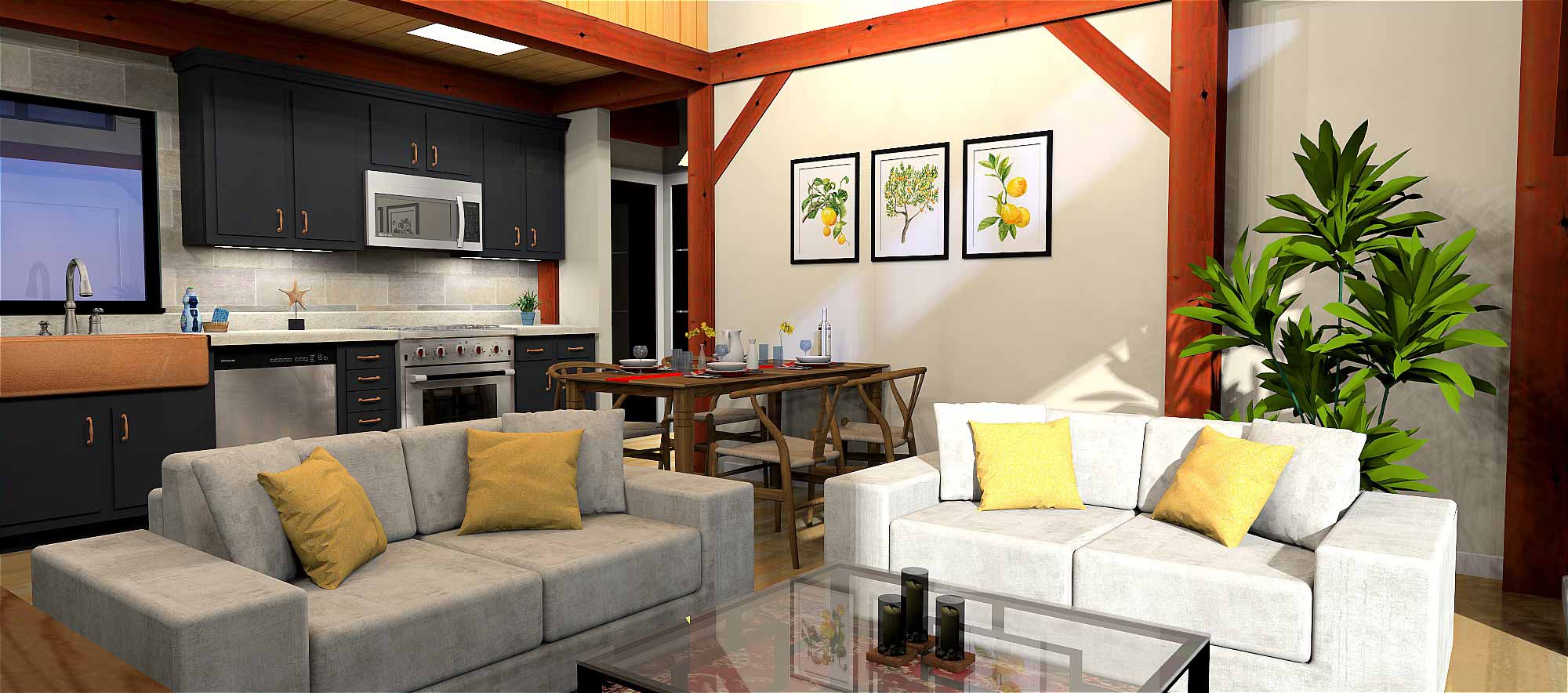 The 40-ft Shed Timber Frame House Plans Posted on September 25, 2020 by Heather HolmOctober 19, 2022 This 40′ long, shed-roofed, modern looking design makes a sweet cottage. In 829 sq. ft., it has two bedrooms on either side of a kitchen-dining-living area.