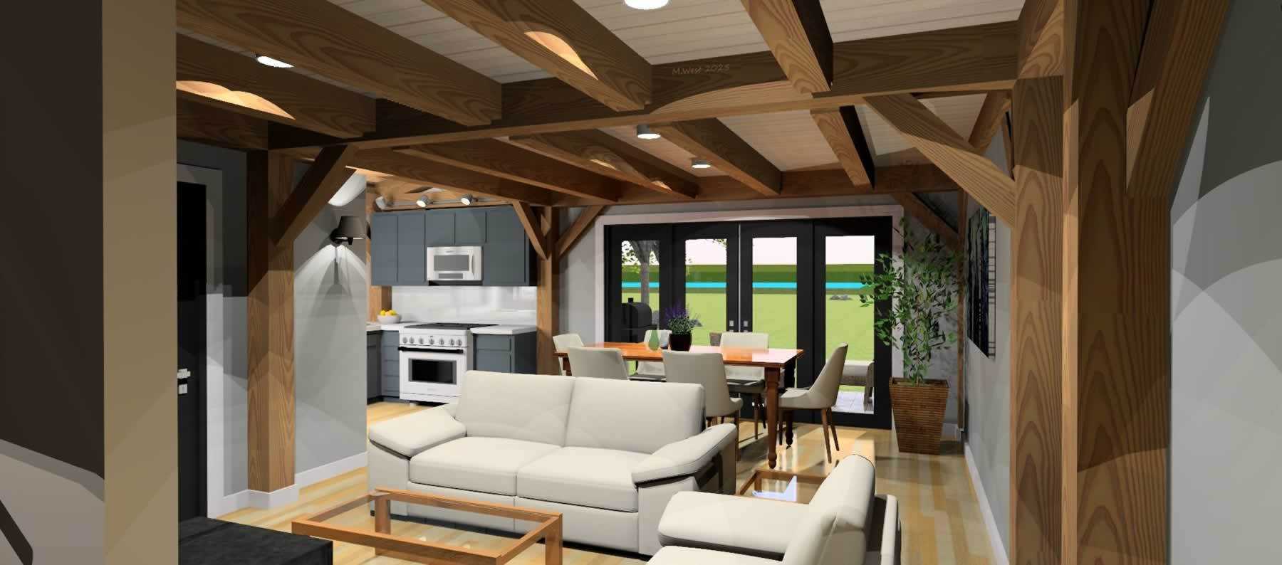 Floor plans, foundation plan, roof plan, sections, elevations, window & door schedules and construction details. - Timber Frame Plans